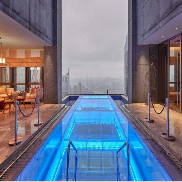 所謂的透明泳池,其實(shí)就是采用全透明玻璃做成的泳池。這種全新方式的泳池吸引了很多人的目光。而這種全透明玻璃,并非我們現(xiàn)實(shí)生活中常見的玻璃或者鋼化玻璃,而是厚度達(dá)到10CM--20CM的高透光亞克力玻璃。