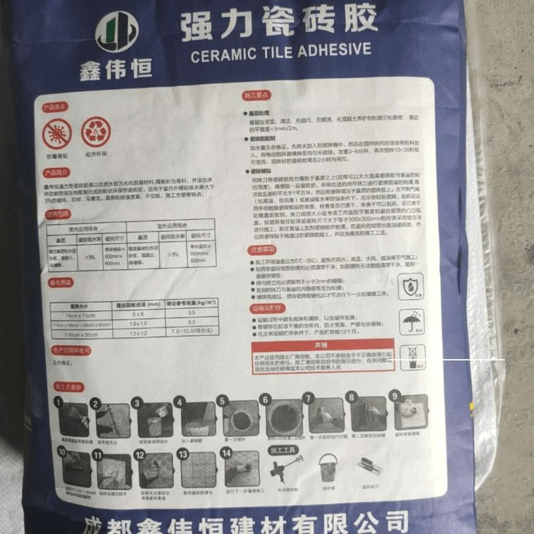 瓷磚粘合劑又稱瓷磚膠或瓷磚粘結(jié)劑、粘膠泥,瓷磚膠粘劑,瓷磚粘接劑,瓷磚膠泥,瓷磚粘貼劑,膠粘劑等多種叫法,是現(xiàn)代裝潢的新型材料,替代了傳統(tǒng)水泥黃沙,膠粘結(jié)力是水泥砂漿的數(shù)倍能有效粘貼大型的瓷磚石材,避免掉磚的風險。良好的柔韌性,防止生產(chǎn)空鼓。本產(chǎn)品是一種聚合物改性的水泥基瓷磚膠,分成1號(普通型)、2號(加強型)和3號(重磚型)等品種。