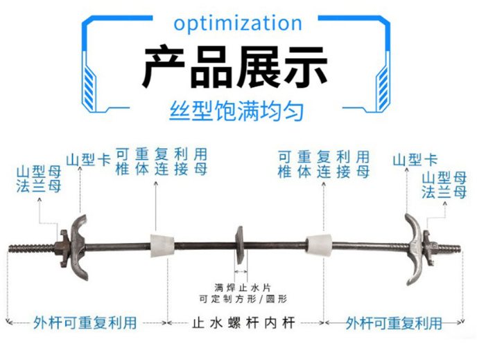 3.穿墻絲桿主要是用于墻體模板內(nèi)、外側(cè)模板之間的拉結(jié),確保內(nèi)外側(cè)模板的間距,緊固模板。