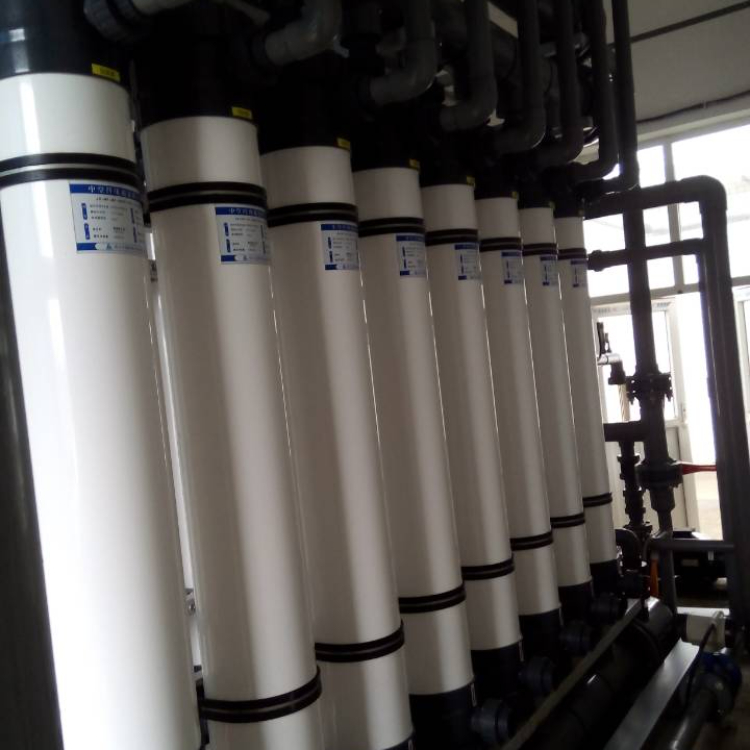 超濾(Ultra-filtration, UF)是一種能將溶液進行凈化和分離的膜分離技術。超濾膜系統(tǒng)是以超濾膜絲為過濾介質,膜兩側的壓力差為驅動力的溶液分離裝置。超濾膜只允許溶液中的溶劑(如水分子)、無機鹽及小分子有機物透過,而將溶液中的懸浮物、膠體、蛋白質和微生物等大分子物質截留,從而達到凈化或分離的目的。