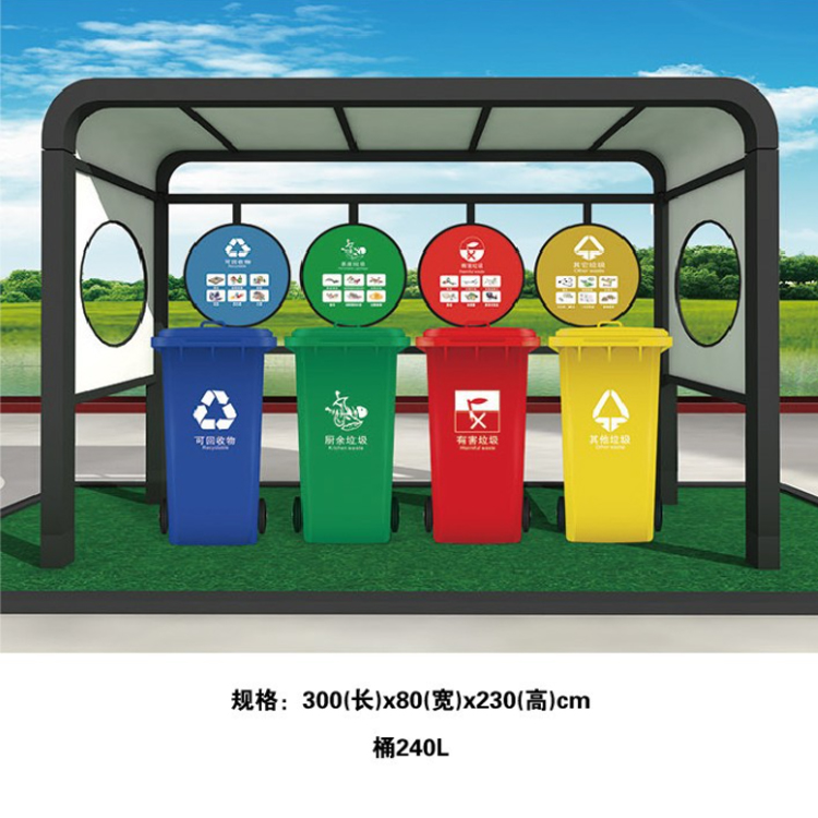 產(chǎn)品參數(shù) 產(chǎn)品名稱:垃圾分類亭 公園鄉(xiāng)村街道 可分類垃圾桶 小區(qū)垃圾分類投放點(diǎn) 可批發(fā)