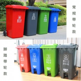 240L塑料垃圾桶 加厚可掛車 塑料帶蓋 腳踏分類垃圾桶 可定制尺寸