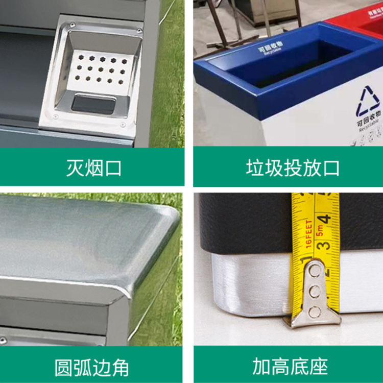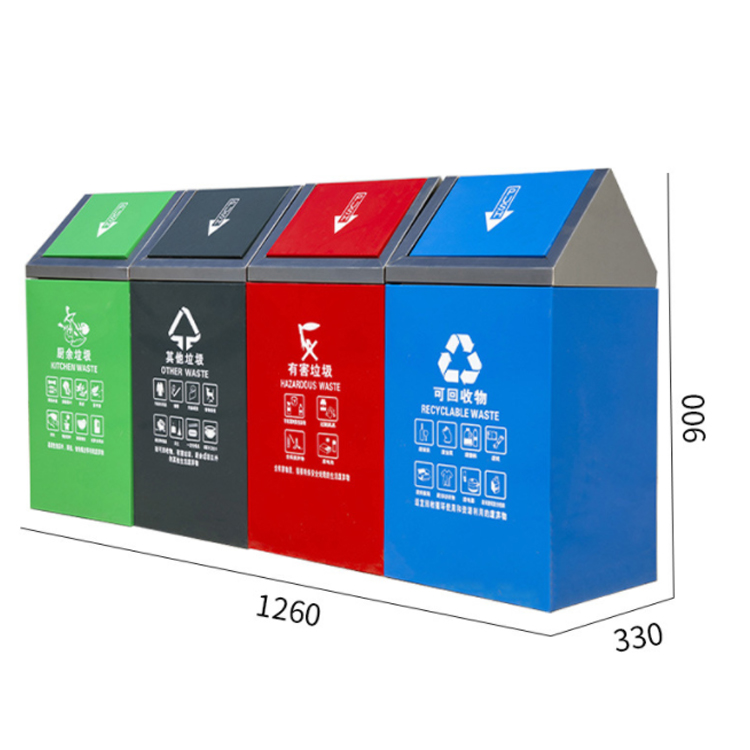 產(chǎn)品名稱:三分類垃圾箱 小區(qū)公園可定制果皮箱 可定制尺寸