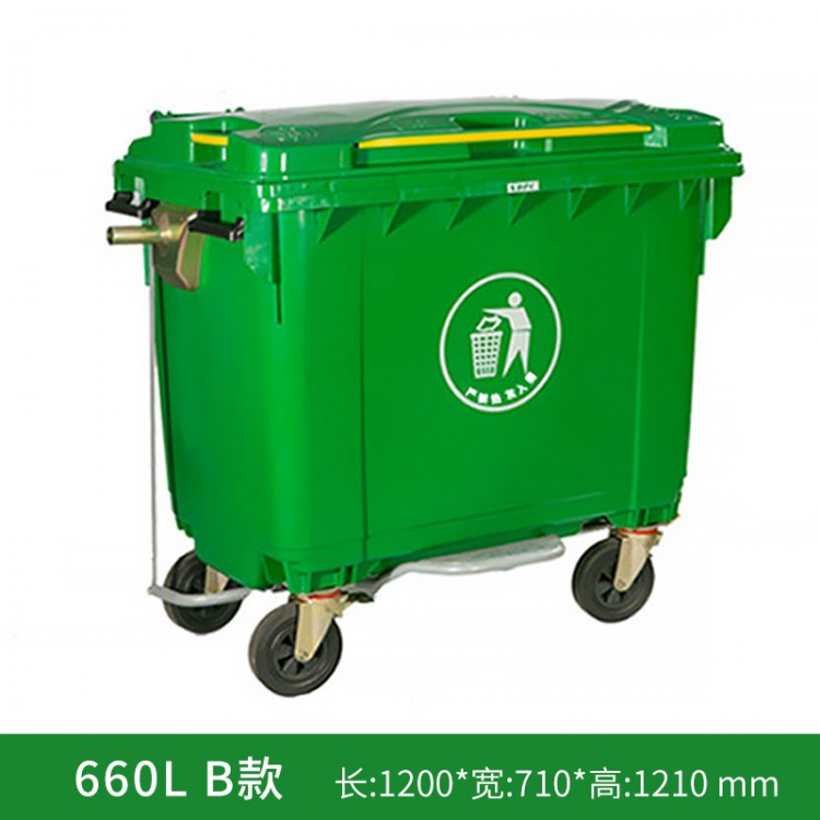 660L塑料垃圾桶 HEPD材質(zhì) 帶蓋帶滾輪可掛車 可定制