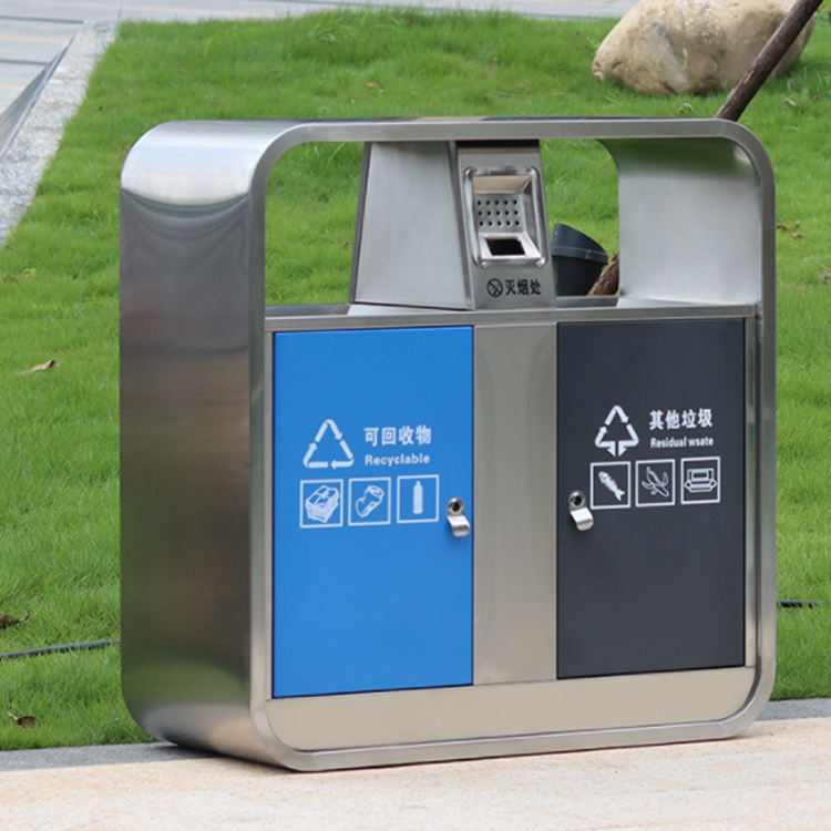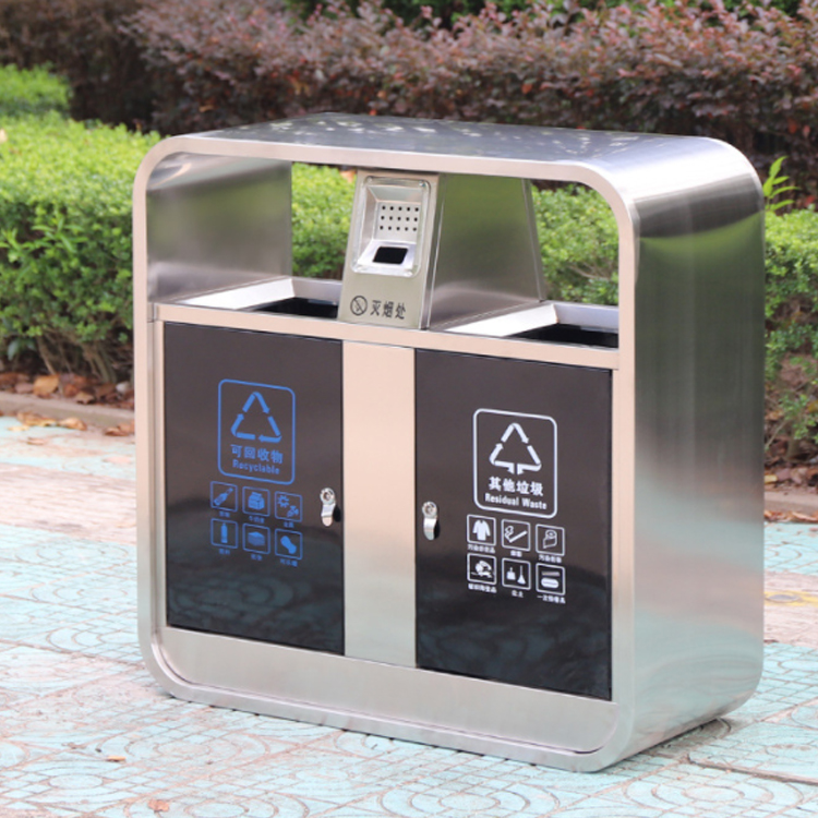 雙分類不銹鋼垃圾桶 室外公園小區(qū)環(huán)衛(wèi)市政街道 果皮箱 可定制尺寸