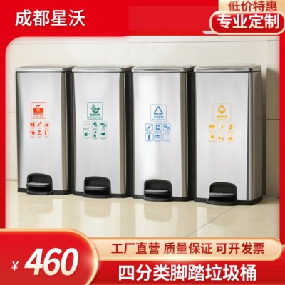 四分類類腳踏垃圾桶 不銹鋼材質(zhì) 景區(qū)室內(nèi)專用垃圾桶 可定制尺寸