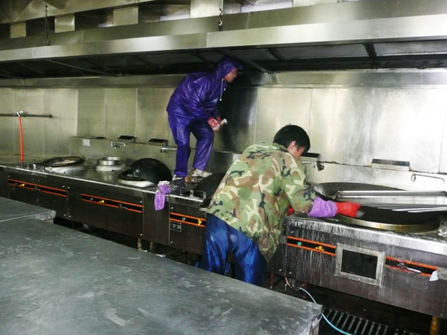 防火網(wǎng)、排煙口、以及灶臺表面。清潔的重點部位是通過排煙口與煙罩同步平行的排煙道。我們將重點對平行煙道內部進行清潔。(油煙機管道由進入管道內大型油煙機清洗,清洗內容包括煙罩表面、煙罩內的燈罩、運水系統(tǒng)、清洗)。
