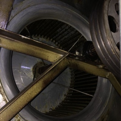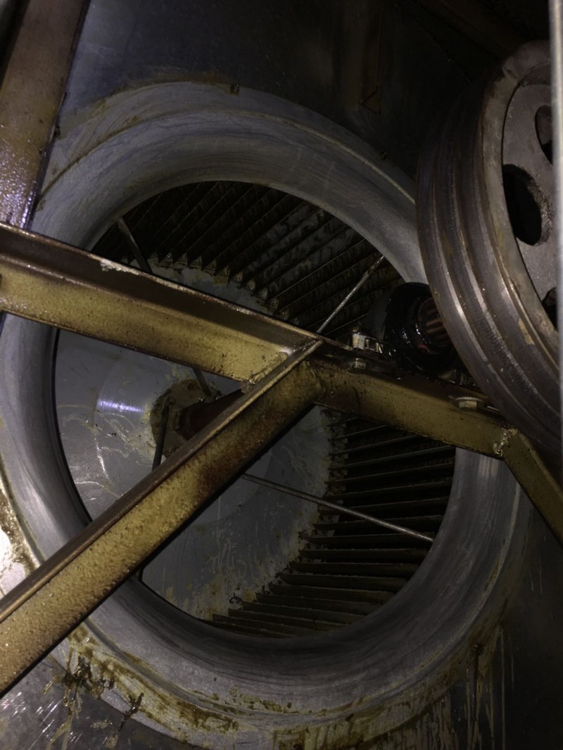 家庭排油煙機使用了一段時間,無論你是不是很勤快地每次烹飪后都將它擦凈,油煙機還是在表面以及內部凝結成為油垢。使用的時間久了,凝結的油垢經(jīng)過高溫以及風壓的氧化,風干作用,一部分經(jīng)過導油槽或者導油管回流到接油盒。無法回流的油垢經(jīng)日積月累形成了膠狀的固態(tài)油垢。這樣的油垢凝結在蝸殼里會慢慢將導油孔堵住,以至于液態(tài)油垢無法回流。凝結在渦輪上會慢慢將葉輪的凹型槽填平,降低了渦輪形成額定風壓的能力,同時也破壞了渦輪的動平衡性,增加了電機運轉的阻力。