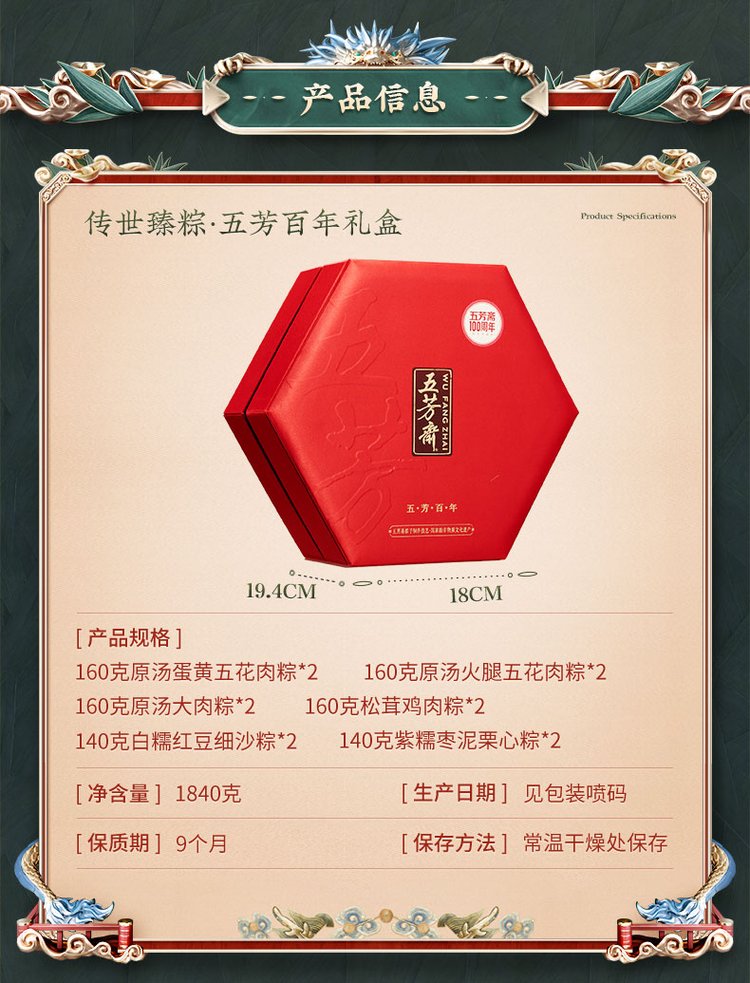 五芳齋粽子百年五芳禮盒 支持批發(fā)定制 貼牌 端午節(jié)過節(jié)送禮