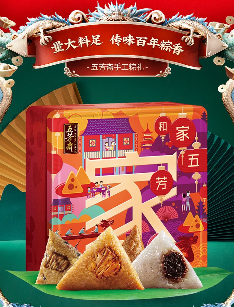 五芳齋粽子和家五芳禮盒 團購優(yōu)惠可開發(fā)票 經(jīng)典五種口味