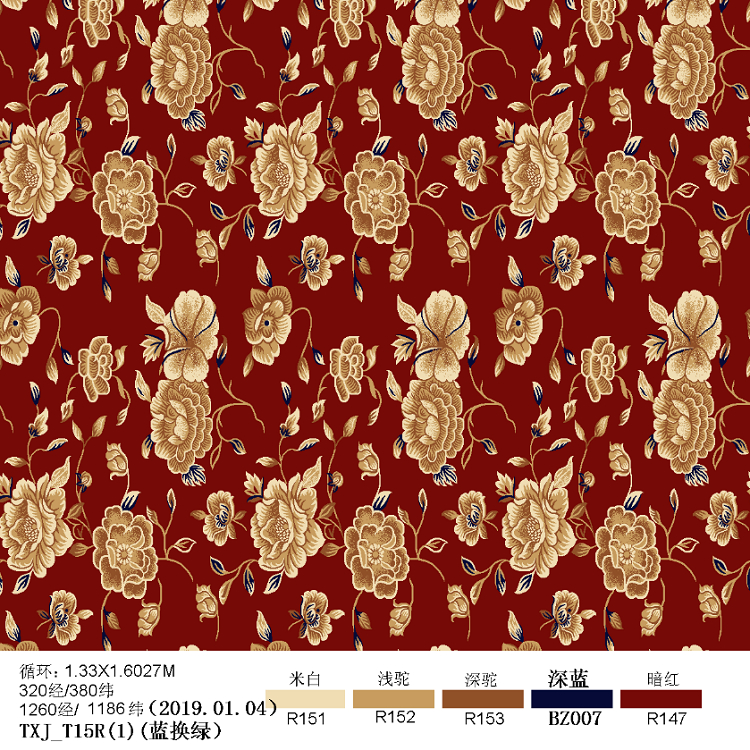 雙面威爾頓地毯的機種是起源于比利時的。其特點就是結(jié)構(gòu)緊密,織物豐滿,單位面積內(nèi)的絨紗克重大,由于雙面威爾頓是雙層織物,因此其生產(chǎn)的效率比較快,也因為這個特性,雙面威爾頓地毯的花型圖案通常都是對稱的!