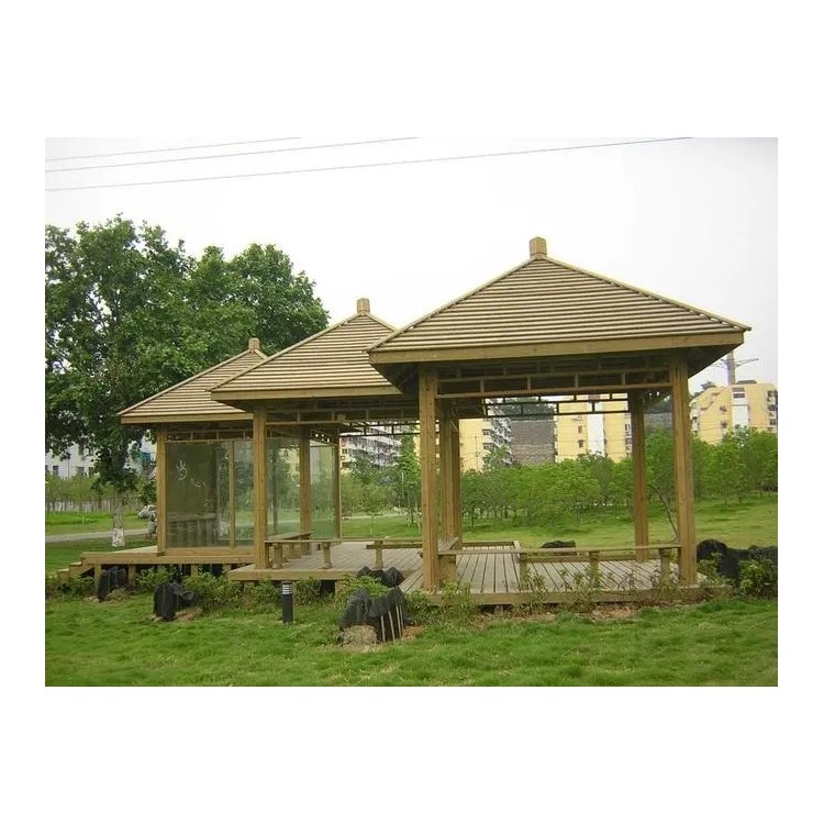 圓林園廠(chǎng)家直銷(xiāo)耐腐蝕景區(qū)公園避暑納涼防腐木涼亭