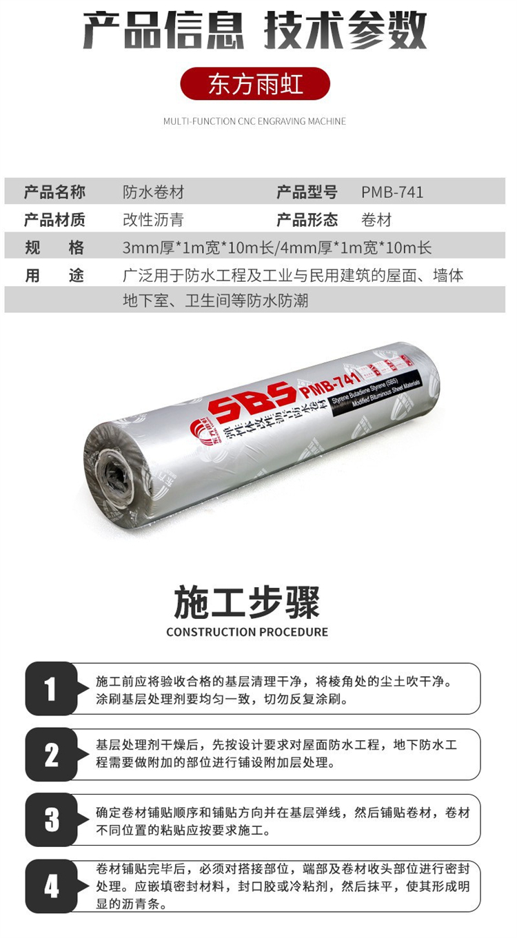東方雨虹SBS防水卷材PMB-741彈性體改性瀝青 防水材料
