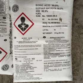 對于陶瓷、搪瓷釉料,氧化硼是很好的助熔劑和網(wǎng)絡(luò)形成體。它可形成玻璃(在低溫時),提高坯釉適應(yīng)性,降低粘度和表面張力,提高折射率,提高機械強度,耐久性耐磨性,它是無鉛釉的重要組成。高硼熔塊熟化快,形成光滑釉面的速度快,有利于著色。在快速燒成釉面磚熔塊中,B2O3以硼酸引入,以保證低鈉含量的要求。用于生產(chǎn)硼酸軟膏、消毒劑、收斂劑、防腐劑等。 加入賽璐璐材料中的硼酸鹽可改變其氧化反應(yīng),促進“碳化”的形成。因此可阻燃。硼酸單獨或者與硼砂一起使用,對減少賽璐璐絕緣材料、木器、床墊中的棉花胎的可燃性有特殊的效果。 用作生產(chǎn)硼鋼中的添加劑、助溶劑,以使硼鋼具有高硬度和良好軋延性。硼酸可防止金屬焊接、銅焊、套焊的表面氧化。它也是硼鐵合金的原料。用于裸皮表面脫灰,防止皮革的表面再鞣皮后發(fā)生灰斑。 硼酸可作為防銹劑、潤滑劑和熱氧化穩(wěn)定劑。它被加入到潤滑劑、剎車油、金屬加工液、水處理劑和燃料添加劑中。 硼酸是制造瓦楞紙粘結(jié)劑的成份之一,同時也是制造酷蛋白和糊精粘結(jié)劑的膠溶劑。硼酸通過交聯(lián)鍵羥基極大地改善了濕膠強度。