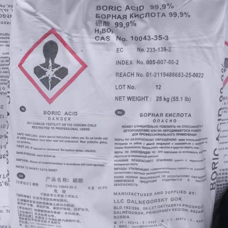 在要求鈉含量較低的玻璃生產(chǎn)中硼酸常常與鈉硼酸鹽(如五水硼砂或無水硼砂)混合使用以調(diào)節(jié)玻璃中的鈉硼比。這對(duì)硼硅酸鹽玻璃來說很重要,因?yàn)檠趸鹪诘外c高鋁的情況下表現(xiàn)為良好的助溶性。 搪瓷、陶瓷工業(yè)用于生產(chǎn)釉藥,能減少釉的熱膨脹、降低釉藥的固化溫度,從而防止龜裂和脫釉,提高制品的光澤和堅(jiān)牢度。