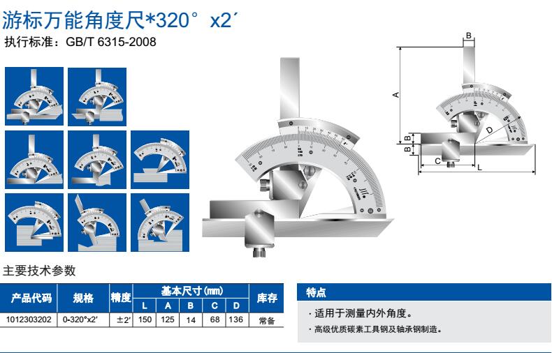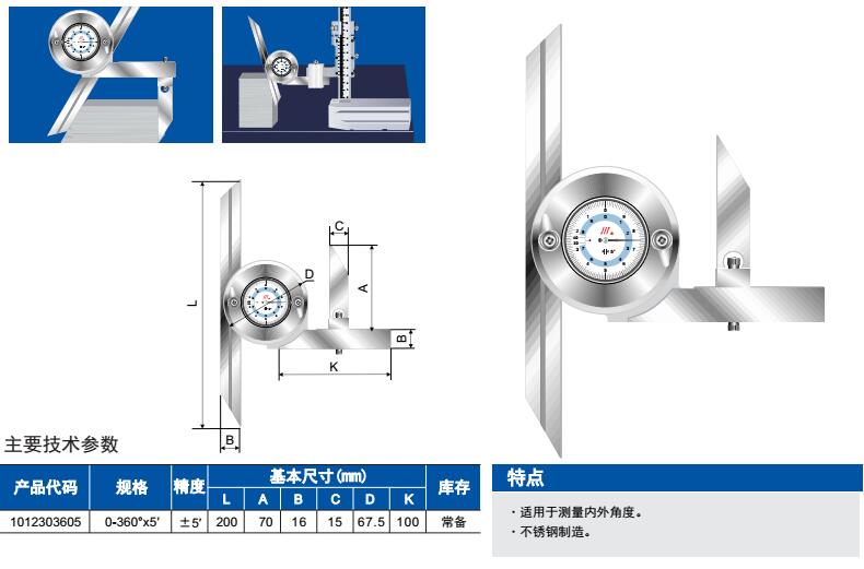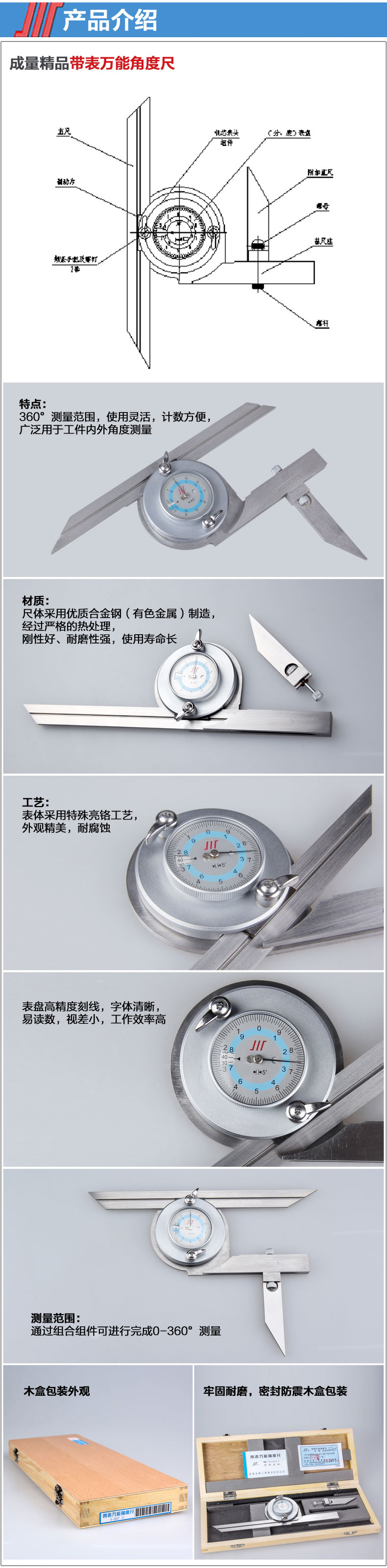 成量川牌角度尺0-320°不銹鋼 角度規(guī) 游標(biāo)角度尺