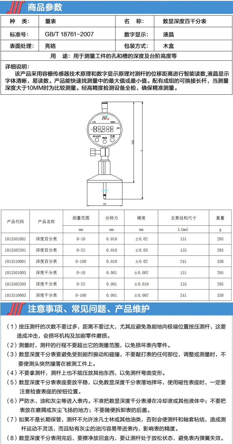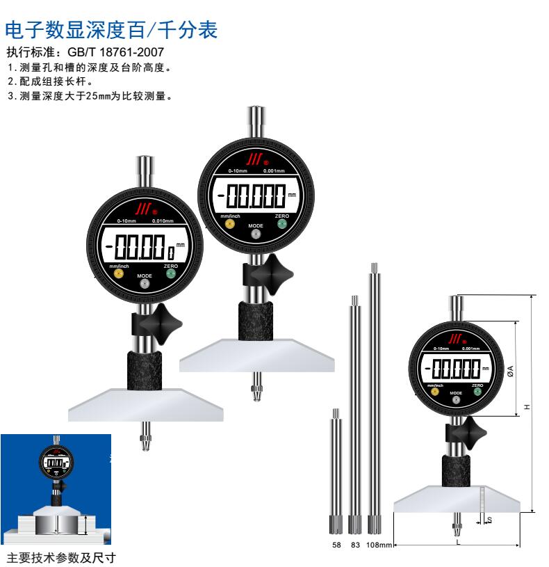 成量電子數(shù)顯深度百分表千分表深度規(guī)0-10mm