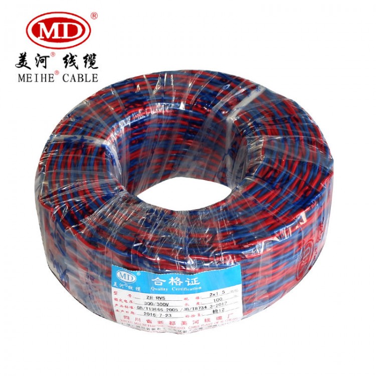 美河線纜 電線消防麻花線 阻燃雙絞線 RVS2*1.5
