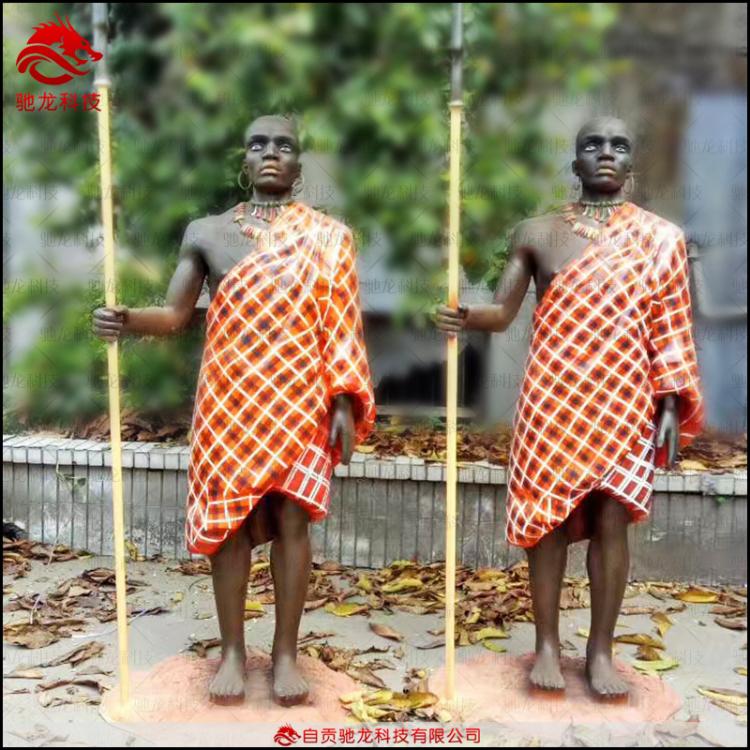 鐵血戰(zhàn)士玻璃鋼雕塑模型非洲人物矛手射手美陳道具定制制作人物雕塑定制