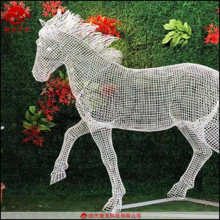 馬鏤空編織雕塑鐵絲雕塑動物造型商場衣櫥不銹鋼鏤空編織美陳擺件,編織是人類古老的手工藝之一。據(jù)《易經(jīng)·系辭》記載,舊石器時代,人類即以植物韌皮編織成網(wǎng)罟(網(wǎng)狀兜物),內(nèi)盛石球,拋出以擊傷動物。編織工藝品中豐富多彩的圖案大多是在編織過程中形成的;有的編織技法本身就形成圖案花紋。常見的編織技法有編織、包纏、釘串、盤結(jié)等。
