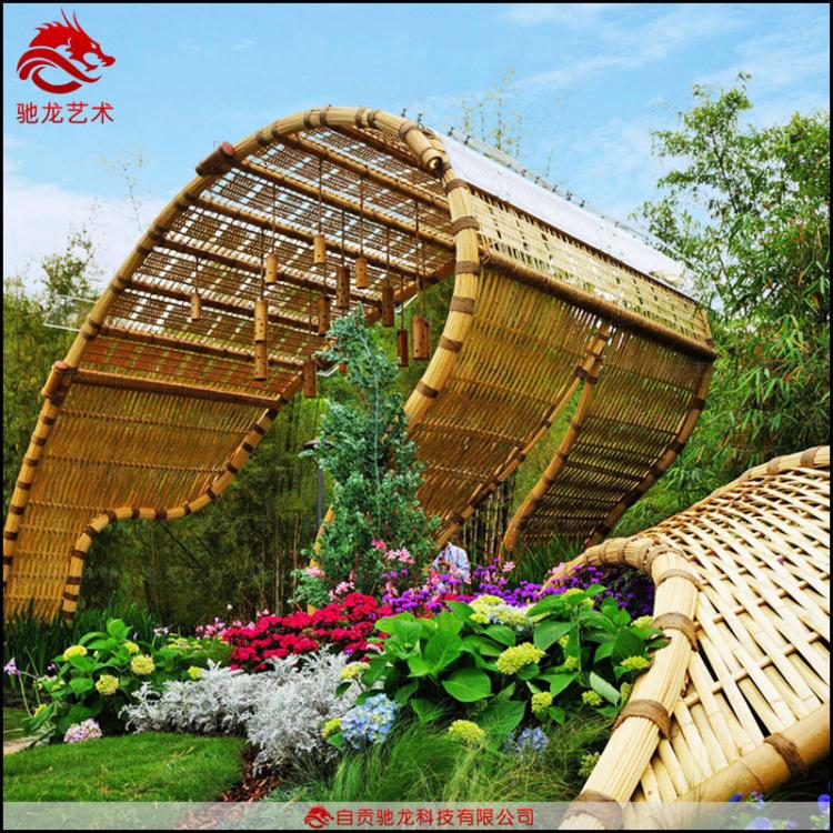 大型竹編工藝品裝置制作一般都是有鋼架作為主骨架造型,鋼材主骨架有著良好的施工延展性,可以用焊接,捆扎,快速便捷的搭建出任何造型,這是竹子作為骨架無法媲美的。