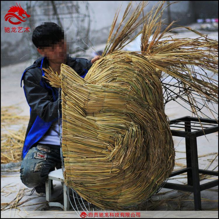稻草人定制造型鄉(xiāng)村民宿打卡美陳裝置草雕藝術(shù)雕塑豐收節(jié)稻草展品每年稻谷收割之后,人們剝完稻谷之后剩下的稻草,都會被拿來制作巨大的稻草雕塑,以延續(xù)稻谷收獲季節(jié)的傳統(tǒng),祈求來年五谷豐登。光有稻草肯定是做不成雕塑的,還需要一些其他東西的輔助,比如木棒,被拿來制作動物雕塑的脊梁。