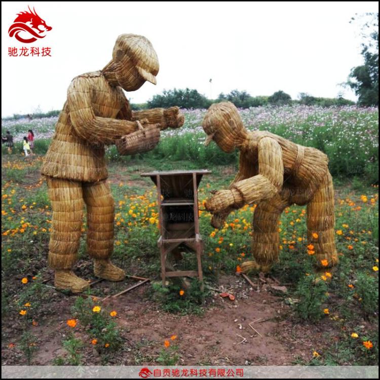 稻草雕塑是利用廢棄秸稈精心制作而成,適用于鄉(xiāng)村游、農(nóng)業(yè)觀光旅游、農(nóng)民豐收節(jié)、農(nóng)耕民俗文化等旅游活動。稻草其材料廉價,常作為田間的“守護(hù)神”嚇跑動物,既保護(hù)農(nóng)作物,又不會對生態(tài)造成污染。而稻草雕塑則是以此為基礎(chǔ),利用稻草這一生態(tài)環(huán)保的“活教材”,可以提高人們的生態(tài)環(huán)保意識。