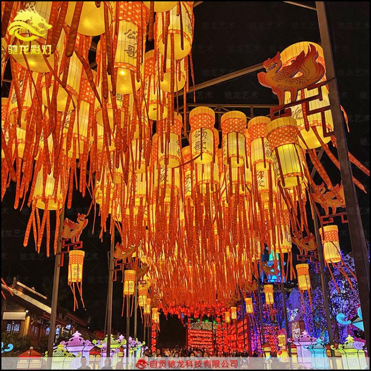 吊頂燈籠定制景區(qū)商業(yè)古街夜游懸掛彩燈定制宮燈花燈造型燈裝置公司,花燈是一種大眾文化展品,以規(guī)模宏大、氣勢恢宏著稱。在技藝精湛的制作工人手中,可以制作出各種各樣令人驚嘆的作品, 燈會文化范圍廣泛,是集文字、語言、書法、民俗等傳統(tǒng)文化為一體的文化精粹。