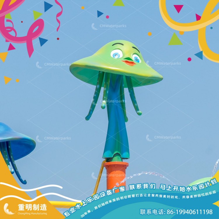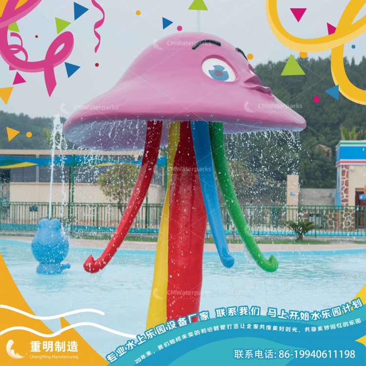 水上樂(lè)園設(shè)備兒童戲水池小品玻璃鋼游泳池水母噴水淋水玩具室內(nèi)外