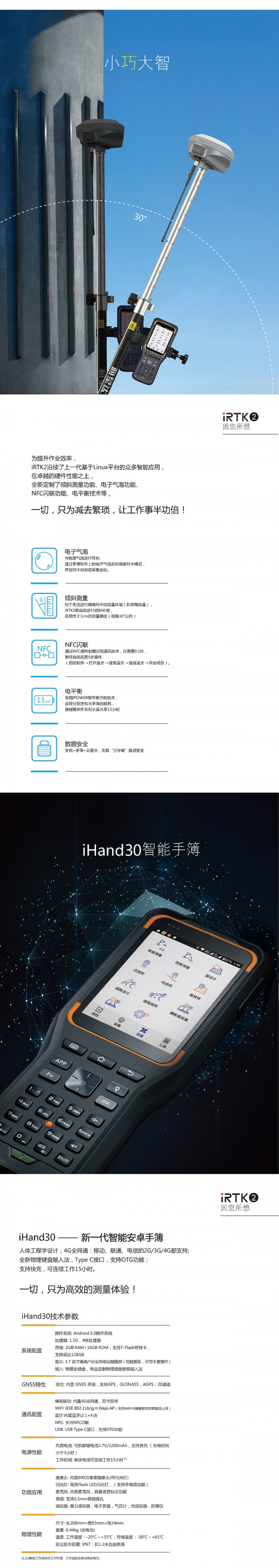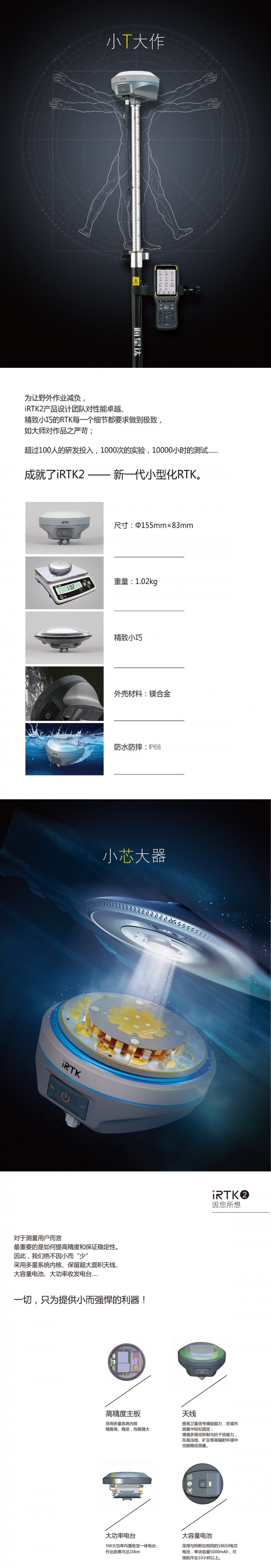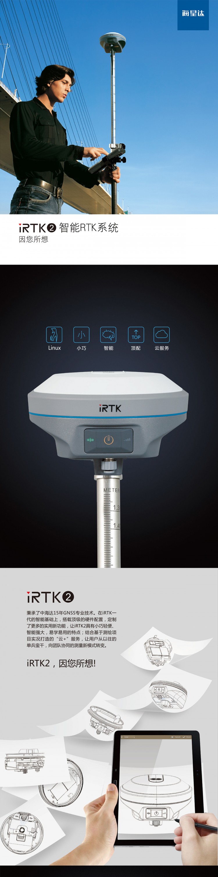 秉承了中海達(dá)15年GNSS專業(yè)技術(shù)。在iRTK一代的智能基礎(chǔ)。上,搭載頂級的硬件配置,定制了更多的實(shí)用新功能,讓iRTK2具有小巧輕便、智能強(qiáng)大,易學(xué)易用的特點(diǎn);結(jié)合基于測繪項(xiàng)目實(shí)況打造的"云+” 服務(wù),讓用戶從以往的單兵蠻干,向團(tuán)隊協(xié)同的測量新模式轉(zhuǎn)變。