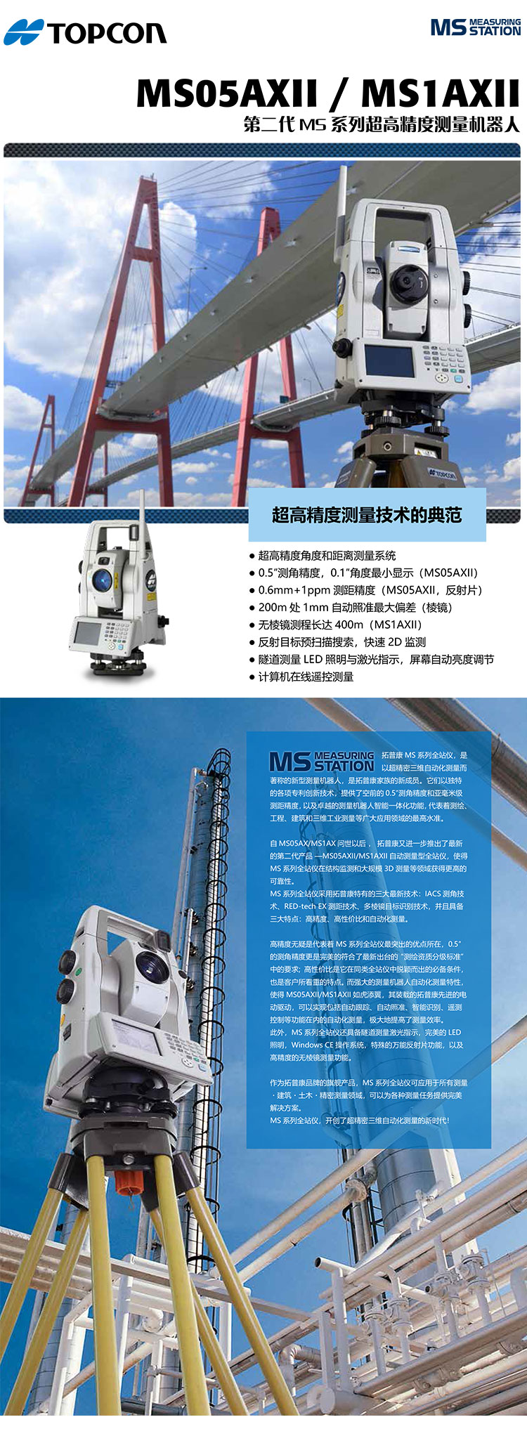 拓普康MSO5AXⅡ全站儀、進口高精度工程測繪儀器房建專用高精度測量機器人、房建橋梁隧道沉降觀測一體化