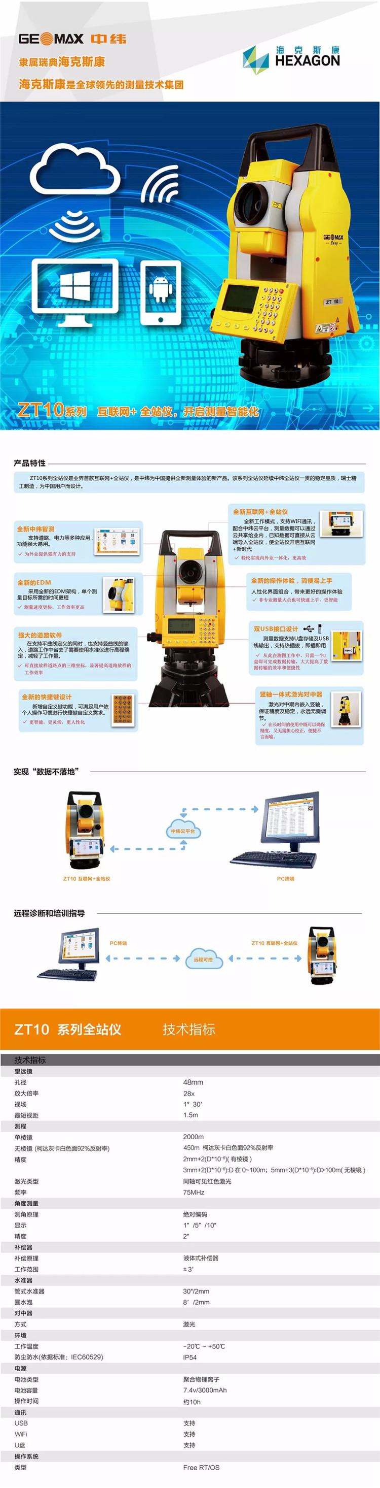 中緯ZT10R互聯(lián)網(wǎng)高精度免棱鏡全站儀激光對中工程測繪儀器隧道橋梁測量