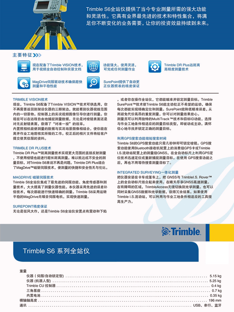 天寶(Trimble )S系列全站儀 進(jìn)口高精度工程測(cè)繪儀 免棱鏡免校正