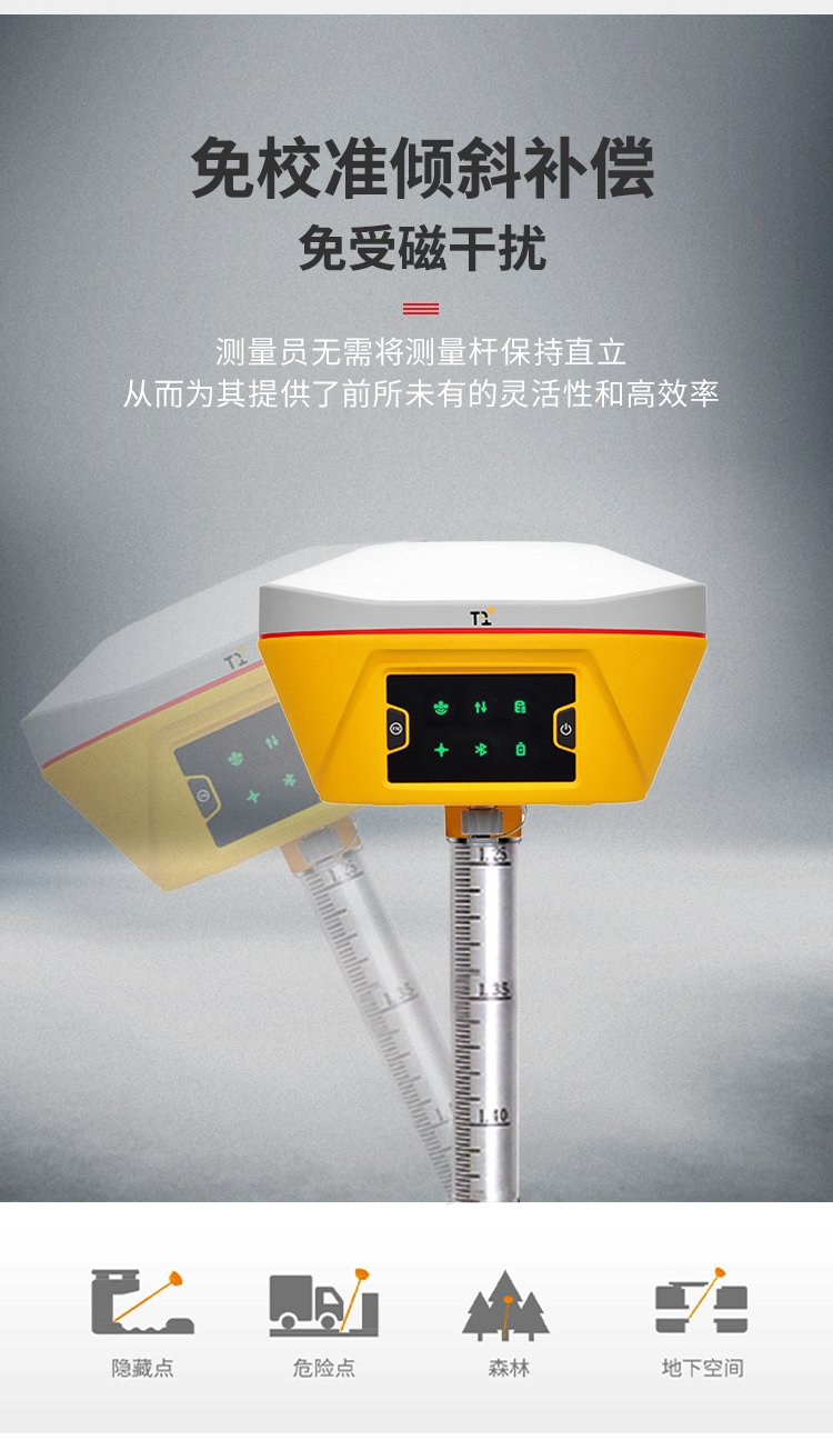 免校準(zhǔn)傾斜補(bǔ)償免受磁干擾;測量員無需將測量桿保持直立從而為其提供了前所未有的靈活性和高效率