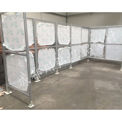2、 該鋁型材圍欄隔斷由4080及4040鋁合金型材,中間板子為透明亞克力板組裝而成,底部帶四方地腳由膨脹螺絲固定在地面,非常穩(wěn)固。