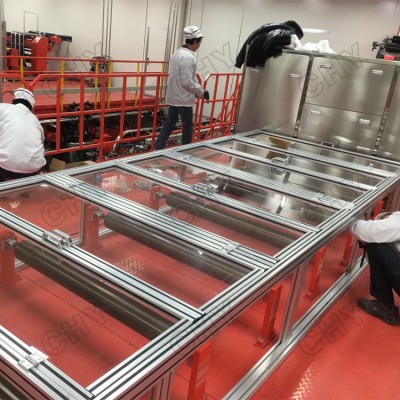 2、 產(chǎn)品特點(diǎn):無塵室機(jī)械設(shè)備防護(hù)罩采用歐標(biāo)4080鋁型材及透明亞克力板組裝而成。