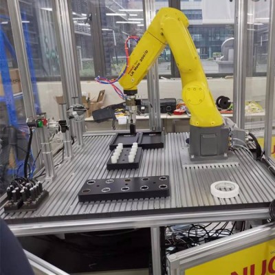 2、 組裝:該機(jī)械手安全圍欄主要由4040、4080鋁合金型材組裝而成,桌面型材上打孔方便固定機(jī)械手及其備件。