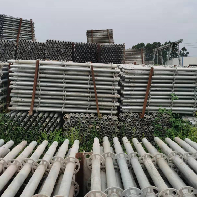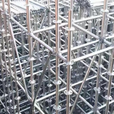 盤扣式腳手架又叫圓盤式腳手架,和輪扣式腳手架并不是同一類型。在國內很多人把盤扣式腳手架和輪扣式腳手架混為一談,很明顯是錯誤的。盤扣式腳手架技術起源于德國,是歐洲和美洲的主流產品,支撐架分為立桿及橫桿、斜桿,圓盤上有八個孔,四個小孔為橫桿專用;四個大孔為斜桿專用。橫桿、斜桿的連接方式均為插銷式的,可以確保桿件與立桿牢固連結。橫桿、斜桿接頭特別依管的圓弧制造,與立桿鋼管呈整面接觸,敲緊插銷后,呈三點受力( 接頭上下二點及插銷對圓盤一點)可牢牢固定增加結構強度并傳遞水平力,橫桿頭與鋼管身采用滿焊固定,力量傳遞無誤。而斜桿頭為可轉動接頭,以鉚釘將斜桿頭與鋼管身固定。至于立桿的連接方式是以四方管連接棒為主,而連接棒已固定在立桿上,不用另外的接頭組件來組合,可省卻材料遺失及整理的麻煩。
