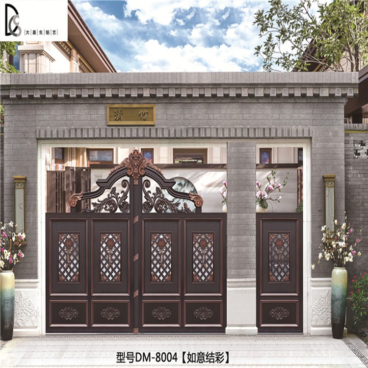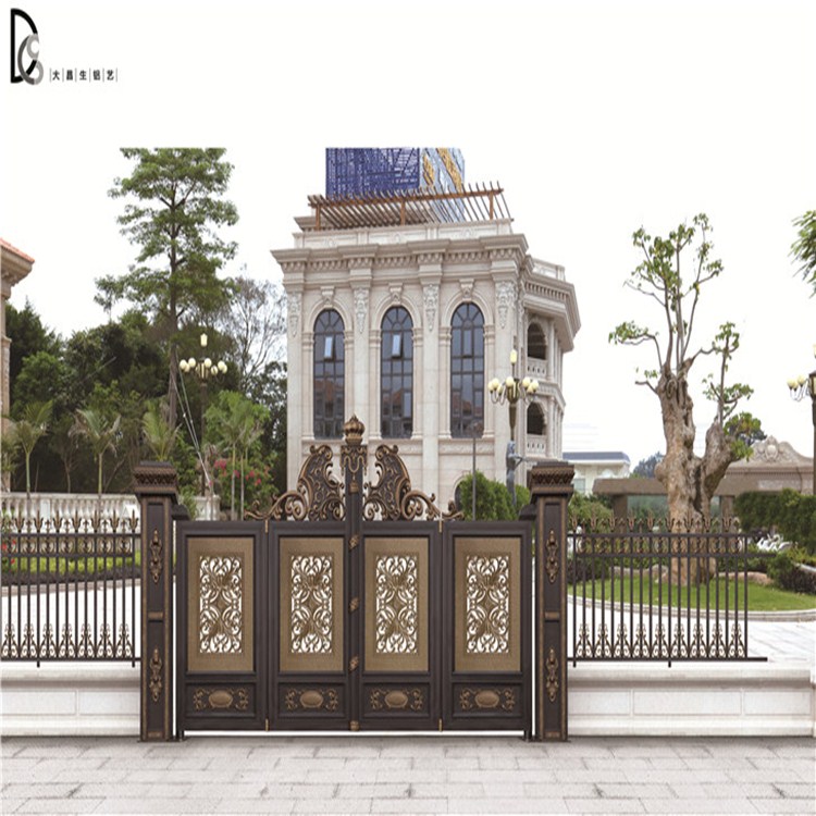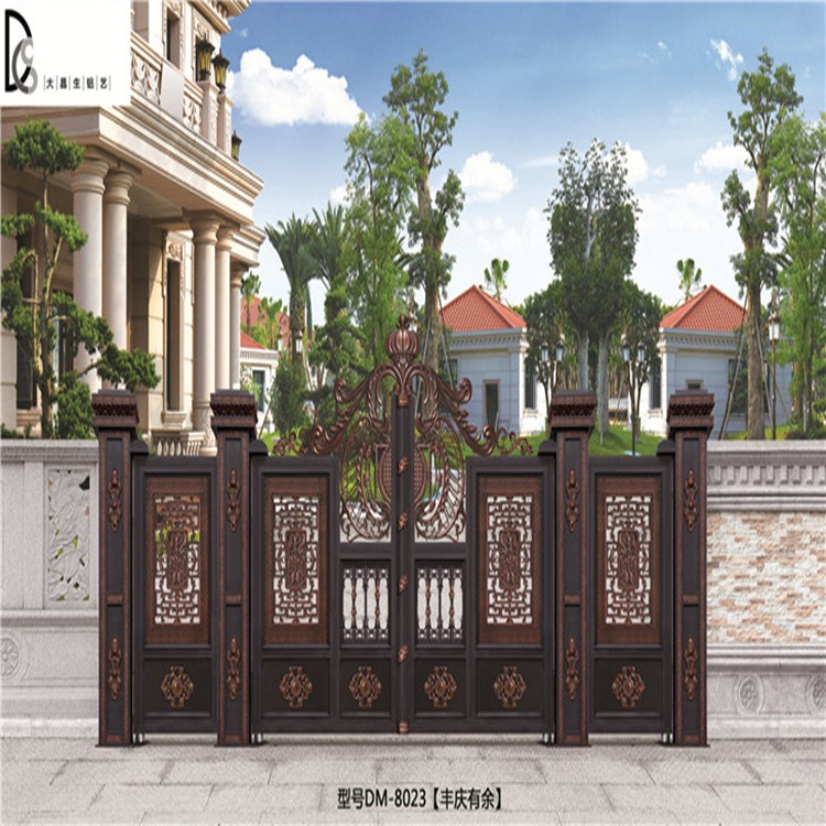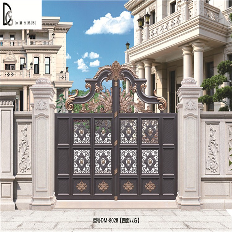 鋁藝大門是將表面處理過的鋁合金型材,經(jīng)下料、打孔、銑槽、攻絲、制作、組裝等加工工藝面制作成的門框構(gòu)件,再用連接件、密封材料、開閉五金配件、玻璃一起組合裝配而成。