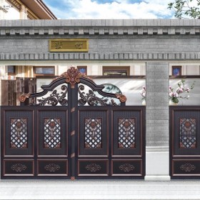 鋁藝大門是將表面處理過(guò)的鋁合金型材,經(jīng)下料、打孔、銑槽、攻絲、制作、組裝等加工工藝面制作成的門框構(gòu)件,再用連接件、密封材料、開(kāi)閉五金配件、玻璃一起組合裝配而成。