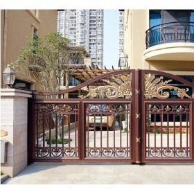 鋁藝大門是將表面處理過的鋁合金型材,經(jīng)下料、打孔、銑槽、攻絲、制作、組裝等加工工藝面制作成的門框構(gòu)件,再用連接件、密封材料、開閉五金配件、玻璃一起組合裝配而成。