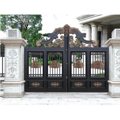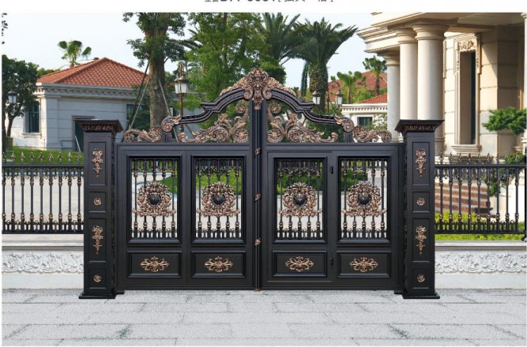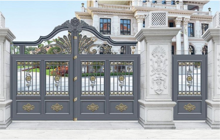 鋁藝大門是將表面處理過的鋁合金型材,經下料、打孔、銑槽、攻絲、制作、組裝等加工工藝面制作成的門框構件,再用連接件、密封材料、開閉五金配件、玻璃一起組合裝配而成。