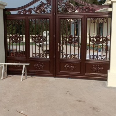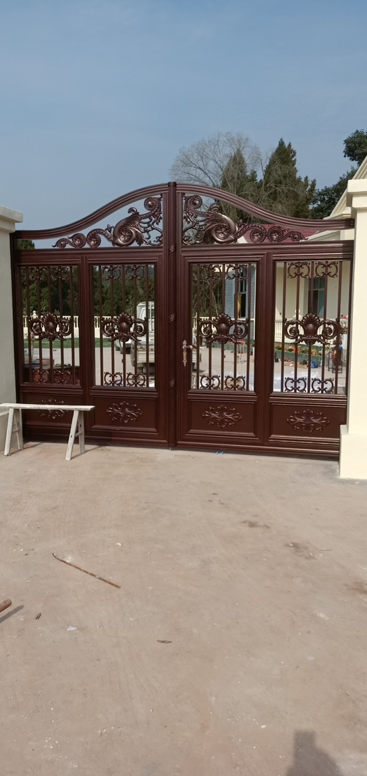 鋁藝大門是將表面處理過的鋁合金型材,經(jīng)下料、打孔、銑槽、攻絲、制作、組裝等加工工藝面制作成的門框構(gòu)件,再用連接件、密封材料、開閉五金配件、玻璃一起組合裝配而成。