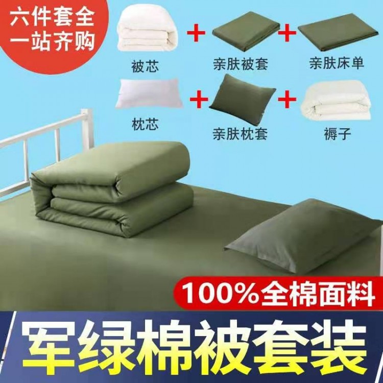 成都軍被新疆一級棉加厚棉花全棉被子保暖軍訓(xùn)軍綠被褥子 床單 被罩 藍(lán)色 軍綠色 學(xué)生宿舍單人 物業(yè)勞保
