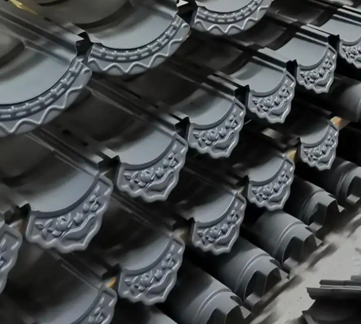 脊瓦是覆蓋屋脊,并與屋脊兩邊斜屋面上的瓦相搭接的槽形瓦。通??勺龀扇俗中?、馬鞍形、圓弧形,并與黏土瓦、琉璃瓦、塑料瓦、石棉水泥瓦等類型的屋面配套使用。如與聚酯玻璃鋼瓦配套的玻璃鋼脊瓦的長(zhǎng)度達(dá)850mm,每邊寬230~240mm,夾角120°;與石棉水泥瓦配套的石棉水泥脊瓦長(zhǎng)780mm,每邊寬180~230mm,夾角125°;用于黏土平瓦類屋脊的脊瓦長(zhǎng)度300~425mm,寬度180~230mm,zui小抗折荷重應(yīng)大于686.5N?!⌒蜗蟮囊怨蕦m為例,丫子形的棱上多為脊瓦,作用是向兩邊排水,棱之間的面上的為蓋瓦,作用是沿面向下排。鋪設(shè)脊瓦時(shí),應(yīng)將油氈瓦沿切槽剪開(kāi),分成四塊作為脊瓦,并用兩個(gè)油氈釘固定。脊瓦應(yīng)順年zui大頻率風(fēng)向搭接,并應(yīng)蓋住兩坡面油氈瓦,其搭蓋寬度每邊不應(yīng)小于100mm。脊瓦與脊瓦的壓蓋面不應(yīng)小于脊瓦面積的1/2。如果脊瓦的鋪設(shè)方法不當(dāng);就無(wú)法蓋住坡瓦,易產(chǎn)生滲漏水。