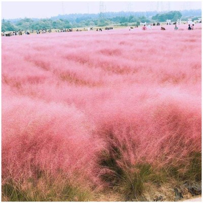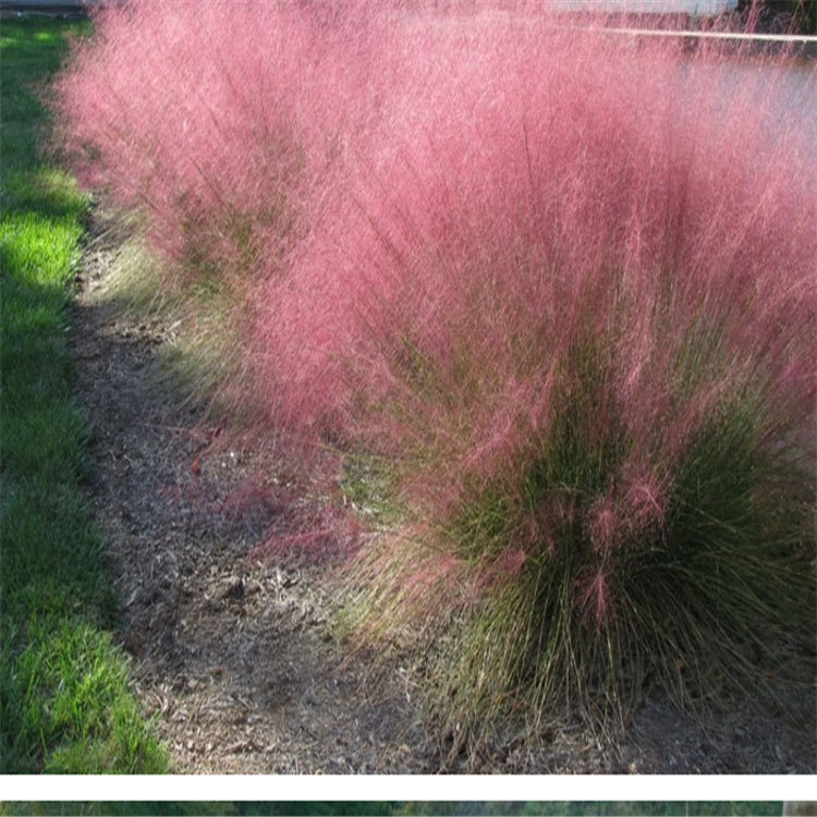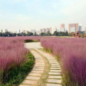 粉黛亂子草(學(xué)名:Muhlenbergia capillaris(Lam.) Trin.):多年生暖季型草本,株高可達30-90厘米,寬可達60-90厘米。頂端呈拱形,綠色葉片纖細。頂生云霧狀粉色花絮,花期 9-11 月,成片種植可呈現(xiàn)出粉色云霧海洋的壯觀景色,景觀可由9月份一直持續(xù)至11月中旬,觀賞效果好。