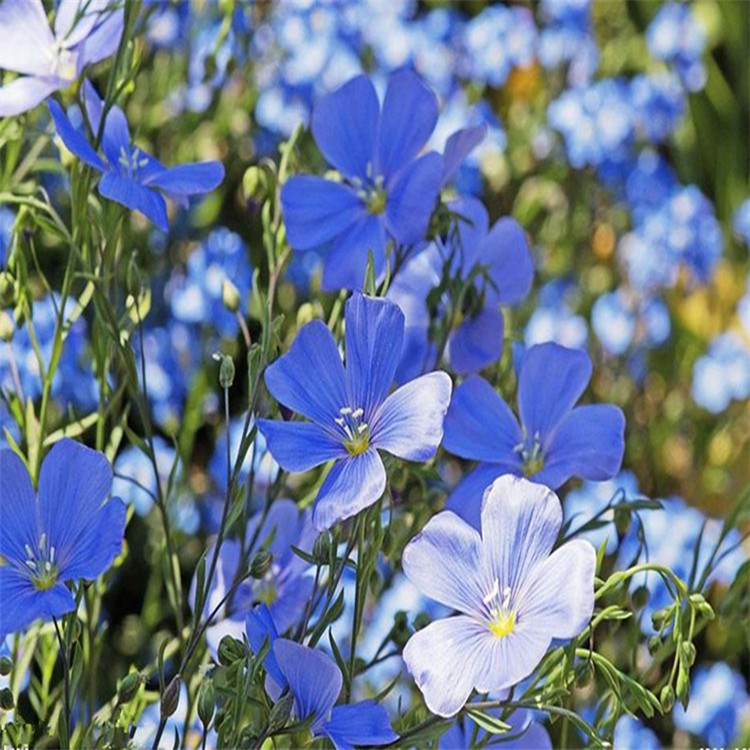 藍亞麻(Linum perenne)又名亞麻花。亞麻科,亞麻屬二年生草本花卉.原產(chǎn)歐洲。株高50 ~60cm ,葉細而多,線形螺旋狀排列,花頂生或腋生,花梗纖細而下垂,花冠5 瓣,藍色或淺藍色,果實為蒴果。藍亞麻每年4 月初開始生長。11月初枝葉枯萎?;ㄆ?~7月,陸續(xù)開放。每朵花開放的時間不長,但整株開放時間較長。果熟期8 10月。