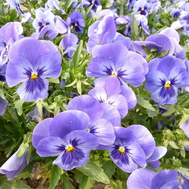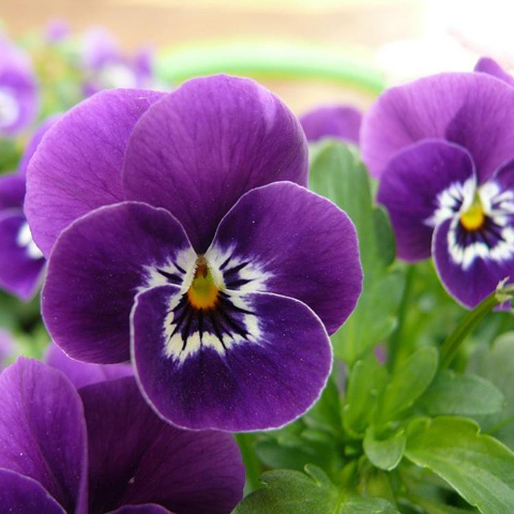 三色堇分枝較多,葉互生,基部葉有長柄、葉片、近心形,莖生葉矩圓狀卵形。花單生于葉腋,花梗長,花瓣5枚,花色有紫、紅、藍(lán)、粉、黃、白和雙色等。較耐寒,喜涼爽,喜陽光,三色菫以露天栽種為宜,無論花壇、庭園、盆栽皆適合,三色堇喜微潮偏于的土壤環(huán)境,不耐旱。生長期保持土壤濕潤,冬天應(yīng)偏干,每次澆水要見于見濕。植株開花時,保持充足的水分對花朵的增大和花量的增多都是必要的。在氣溫較高、光照強(qiáng)的季節(jié)要注意及時澆水。