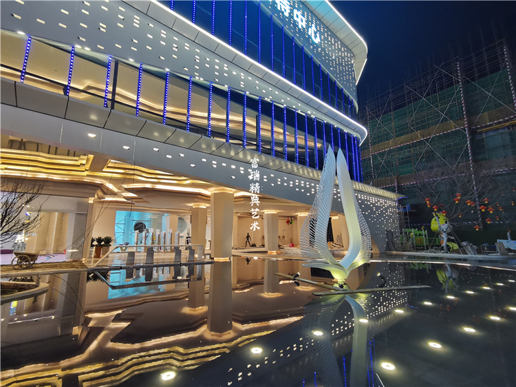 不銹鋼鏡面雕塑 城市小區(qū)裝飾擺件花園綠地售樓處鏤空天鵝造型雕塑