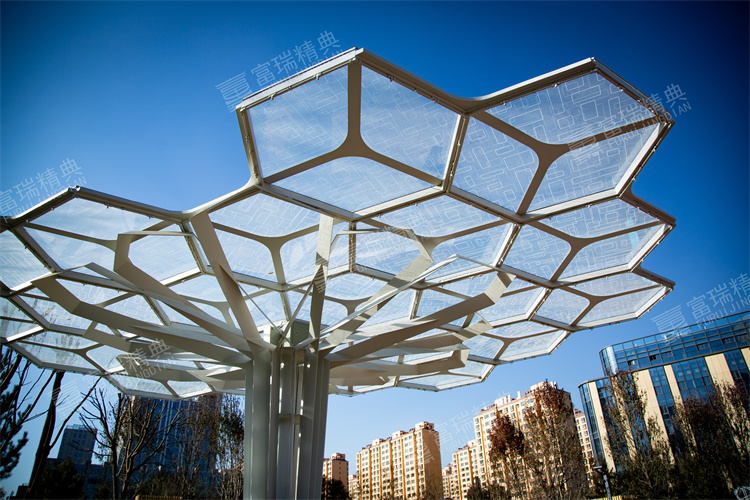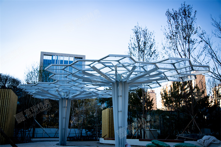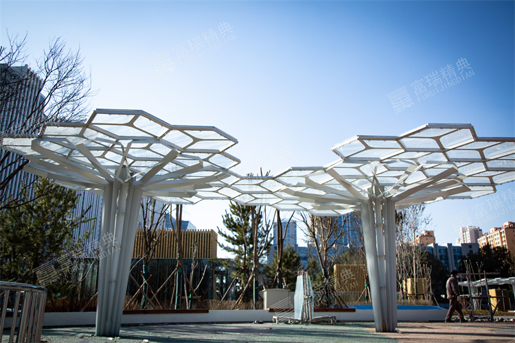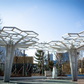不銹鋼景觀廊架公園廣場(chǎng)鋼結(jié)構(gòu)長廊金屬異形頂棚花架遮陽亭